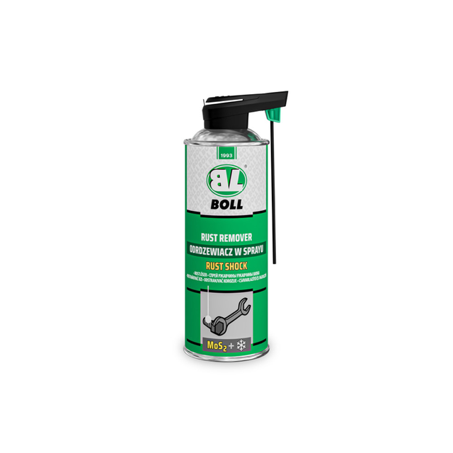 Odrezovač rzi BOLL Rust Shock sprej 0010266 je vysoce účinný přípravek určený k povolování silně zarezivělých a zatuhlých šroubů, matic, svorníků a dalších kovových spojů. Jeho hlavní výhodou je šokové ochlazení, které po aplikaci prudce sníží teplotu ošetřeného místa (až cca −40 °C). Díky tomuto efektu dochází k mikropraskání rzi, čímž se naruší její struktura a spoj se výrazně snáze uvolní.