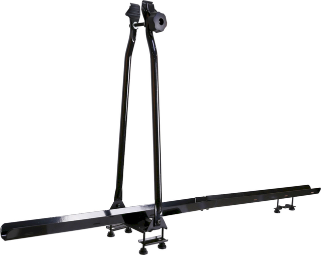 Praktický a lehký ocelový držák kol je určen pro montáž na střešní nosič (tyče) auta.