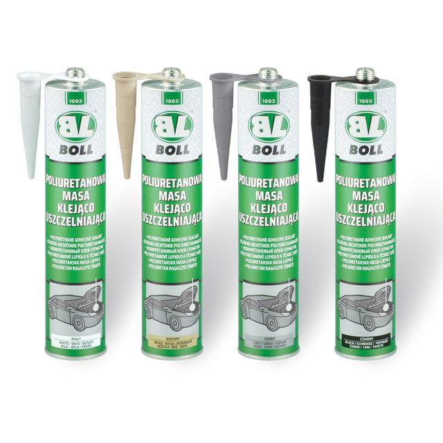 BOLL polyuretanová lepicí a těsnicí hmota je jednosložková tixotropní pasta, která tvrdne působením vzdušné vlhkosti a vytváří pevné, pružné a odolné těsnění. Má vynikající přilnavost k plechům, hliníku, plastům, sklu, dřevu i betonu. Vytváří vnější vrstvu za cca 60 min při 23 °C a 50 % vlhkosti, vytvrzuje 4 mm za 24 h. Tvrdost Shore A cca 50, pevnost v tahu 2 N/mm², smyková pevnost 1 N/mm², odolnost proti roztržení 13 N/mm, prodloužení při přetržení >600 %, modul při přetržení 0,6 MPa. Odolává vodě, soli, olejům, zředěným kyselinám i UV záření. Tepelná odolnost -40 až +90 °C. Lze ji přelakovat všemi lakovacími systémy. Neobsahuje silikon a díky své pružnosti tlumí vibrace a zpevňuje karoserii.