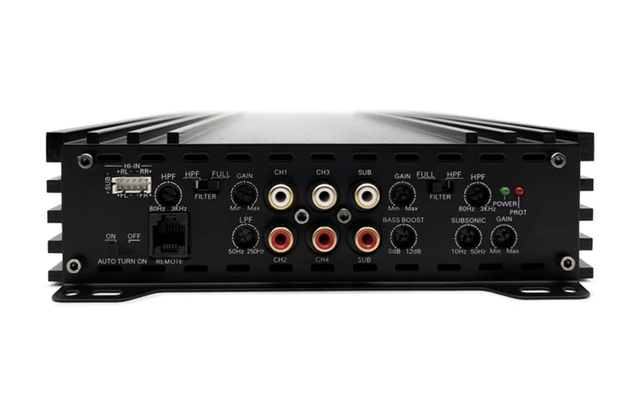 Zapco ST-5B je 5kanálový zesilovač třídy A/B, který spojuje špičkový zvuk Zapco s praktičností pro každodenní použití. Nabízí výkon 4×70 + 1×250 W RMS při 4 Ω a 4×100 + 1×400 W RMS při 2 Ω, je stabilní do 2 Ω (v můstku 4 Ω) a využívá spolehlivé MOSFET napájení. K dispozici jsou RCA i OEM vysokoúrovňové vstupy, funkce automatického zapínání/vypínání (Auto Turn On), plynulé nastavení vstupní citlivosti a elektronická výhybka FULL / LP / HP. Nechybí Bass Boost v rozsahu 0–12 dB, LPF 50–250 Hz a HPF 80–3000 Hz. Frekvenční rozsah činí 10–30 000 Hz, harmonické zkreslení (THD) 0,2 % a odstup signál/šum přes 97 dB. Vstupní citlivost je 0,25–5 V. Zesilovač chrání pojistka 1×40 A. Kompaktní hliníkové šasi o rozměrech 182 × 52 × 351 mm zaručuje snadnou instalaci i do menších vozů. Série Studio-B přináší kvalitu Zapco v dostupnější podobě, aniž by ztratila pověstnou čistotu a spolehlivost.